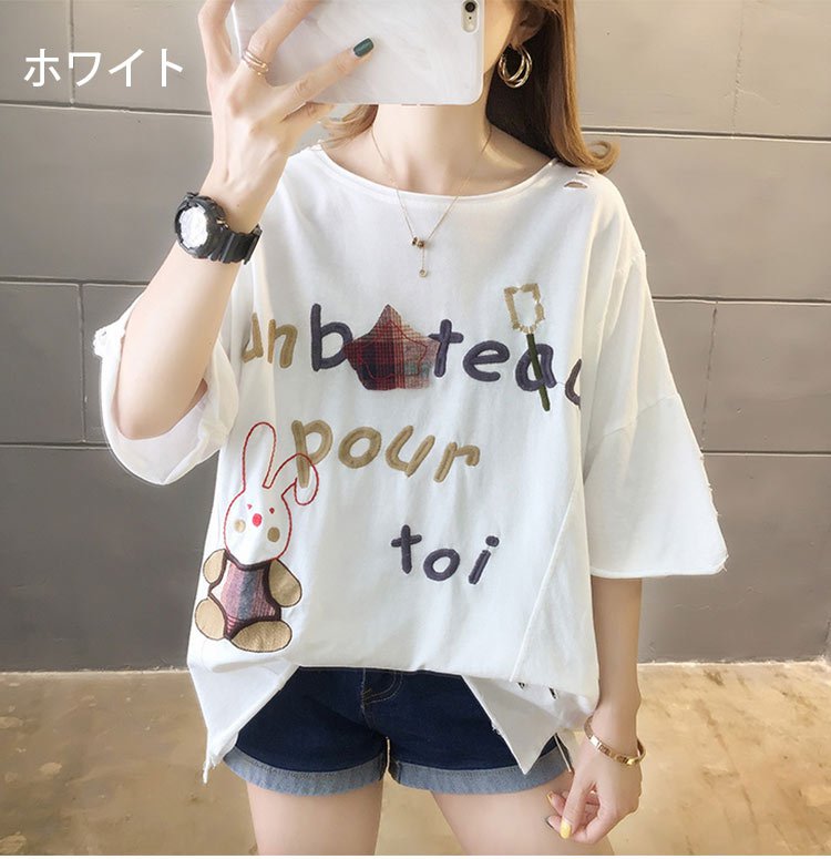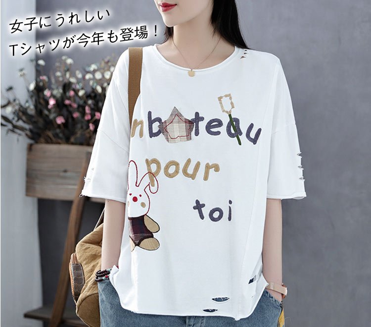 【レディースTシャツ】綿100% 可愛い ラウンド襟 ナチュラルな雰囲気を演出!